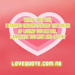 1. When I met you, I started learning how tricks of loving you better. Can I have you now and often?